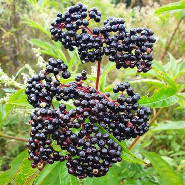 Our elderberry cultivars are Sambucus canadensis and are native to North America. They were chosen for their resilience to northern climates, uniformity in ripening, and productivity.